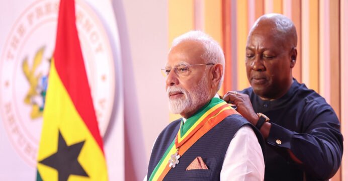 In a post on X, PM Modi said, "I thank the people and Government of Ghana for conferring 'The Officer of the Order of the Star of Ghana' upon me. This honour is dedicated to the bright future of our youth, their aspirations, our rich cultural diversity and the historical ties between India and Ghana. This honour is also a responsibility; to keep working towards stronger India-Ghana friendship. India will always stand with the people of Ghana and continue to contribute as a trusted friend and development partner."