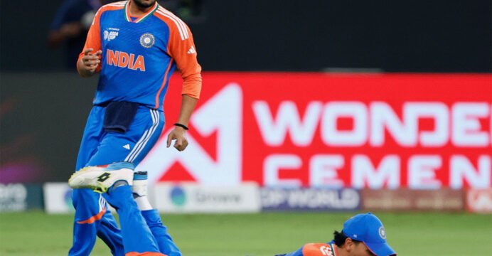 Boundaries tried up and Kuldeep capitalised on the opening. Hussain Talat's reverse sweep was off the mark, and Chakravarthy made no mistake to pouch the opportunity. With Talat gone after a rustic 10(11), Dube stung Pakistan once again, with Farhan running out of luck and holing it out to India skipper Suryakumar Yadav on 58(45).