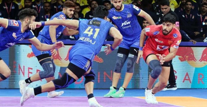 Dabang Delhi started the second half on a strong note, as Neeraj Narwal picked up a point with a successful raid to level the scores at 18-18. The Steelers looked to build on their advantage, keeping pressure on Dabang Delhi, but they refused to back down. Their raiders fought back strongly, and the team managed to inflict an ALL OUT, closing the gap to just one point.