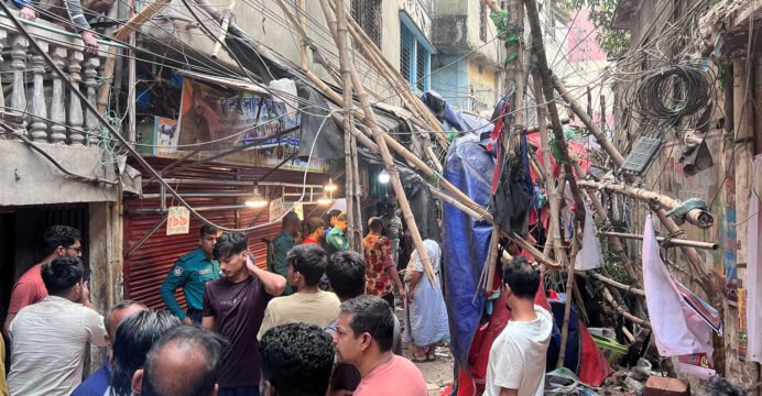 Locals took them to the hospital before the fire service arrived. After being taken to the hospital, doctors declared three people dead. Maksud (50), a security guard at a building under construction in Mugda Medinabagh, was killed when the railing collapsed. The deceased's home is in Ramgati Upazila of Lakshmipur district, the Chief Adviser's office said.