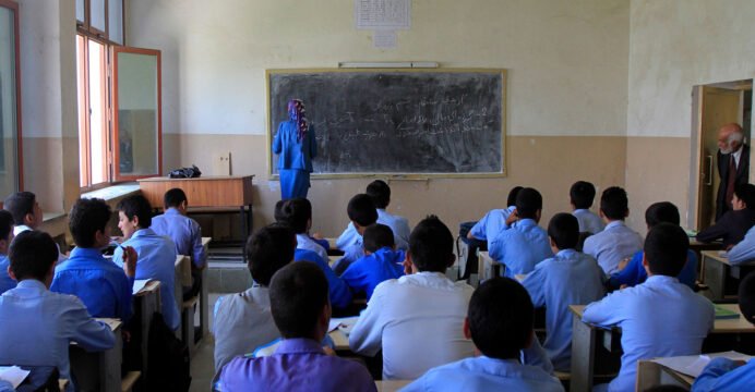 Bereft of buildings, Afghan students forced to attend school under sky
