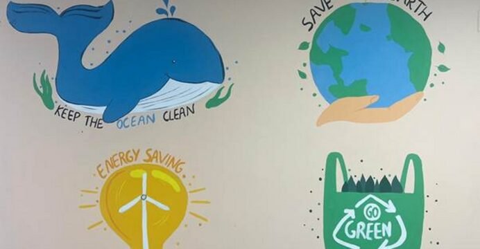 As part of this endeavour, Department corridors and common spaces have been adorned with thematic wall paintings in alignment with the "Waste to Wealth" conceptsave the earth, no plastic, recycling, waste to art, old files, papers and eco-friendly.