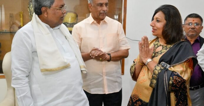 Biocon chief Kiran Mazumdar-Shaw meets Karnataka CM Siddaramaiah