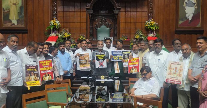BJP, JD(S) protest in Karnataka Assembly seeking Excise Minister RB Timmapur’s resignation over corruption allegations