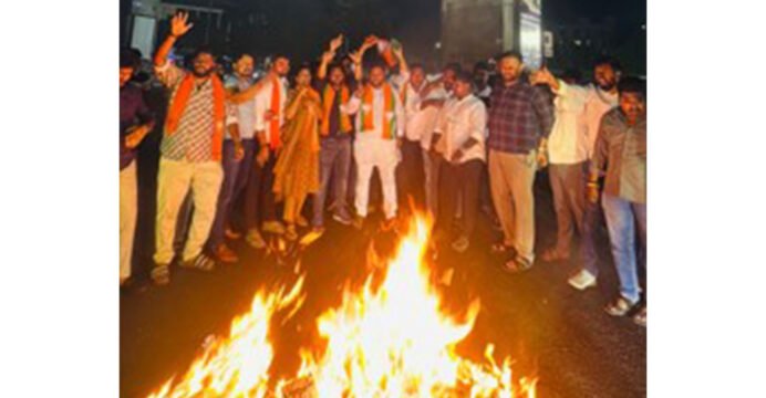BJYM stages protest in Hyderabad, burns Rahul Gandhi effigy after women’s quota bill fails in Lok Sabha