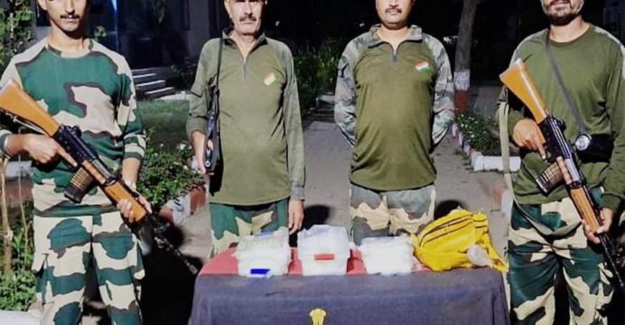 "Acting on specific intelligence, alert BSF troops, in coordination with Punjab Police, conducted a search operation and recovered 01 packet of heroin (Gross weight - 602 grams) from agricultural field near village Tindiwala in Ferozepur. On Amritsar border, based on a specific input of BSF intelligence wing, the alert BSF troops launched an extensive search operation culminating into recovery of 1 large packet containing ICE drug (Gross weight - 3.675 kg) from a farmland near village Bhaini Rajputana. The packet, wrapped in yellow adhesive tape with mental ring & illuminating strips attached, indicates a drone dropping," Public Relations Officer (Punjab Frontier) said in a release.