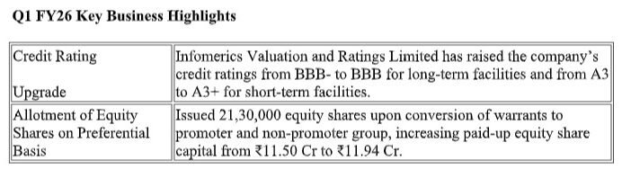 The recent warrant conversions have further strengthened our capital base and reflect continued investor confidence. Our credit rating upgrade also underscores financial discipline and robust business fundamentals. With a strong pipeline, expanding presence, and a clear focus on innovation and execution, we are poised to scale new heights in the coming quarters."