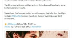 Feb 14, 2026Mumbai (Maharashtra) , February 14 (ANI): Shahid Kapoor and Vishal Bhardwaj's latest collaboration 'O'Romeo' kickstarted its box office business on a "slow note", as per trade analyst Taran Adarsh.The film earned Rs 9.01 crore on its... -