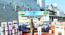 Deputy Chief of Naval Staff of Indian Navy hands over operational spares for MNDF Coast Guard Ship Huravee to Maldives CDF
