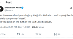 “See you guys at Salt Lake Stadium”: SRK confirms he’ll meet Lionel Messi in Kolkata on December 13