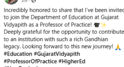 Invited to join Dept of Education at Gujarat Vidyapith as Prof of Practice, says Swaroop Rawal