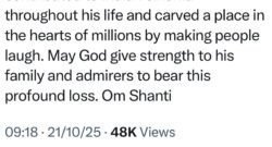 Oct 21, 2025Mumbai (Maharashtra) , October 21 (ANI): Veteran actor and comedian Asrani's longtime manager revealed that the 'Sholay' actor had wished to leave the world quietly, like a common man, hence his family revealed the legendary actor's... -