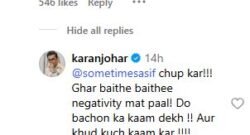 ‘Shut up, don’t spread negativity’: Karan Johar blasts troll for calling him “nepo kid ka daijaan” amid ‘Saiyaara’ success