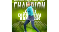 Union Minister Mansukh Mandaviya congratulates Jensi Kanabar for winning Australian Open Asia-Pacific Elite 14 and Under Trophy