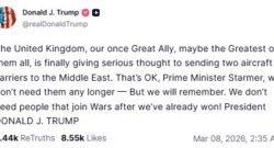 ‘Don’t need people to join wars after we’ve already won’: Trump slams UK PM Starmer