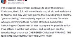 “Guns-a-blazing”: Trump warns Nigeria of aid cut, threatens military action