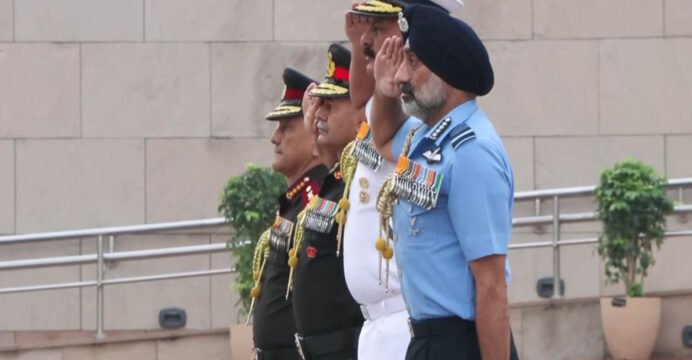 CDS, along with the chiefs of the Indian Air Force, Army and Navy, laid wreaths at the National War Memorial.