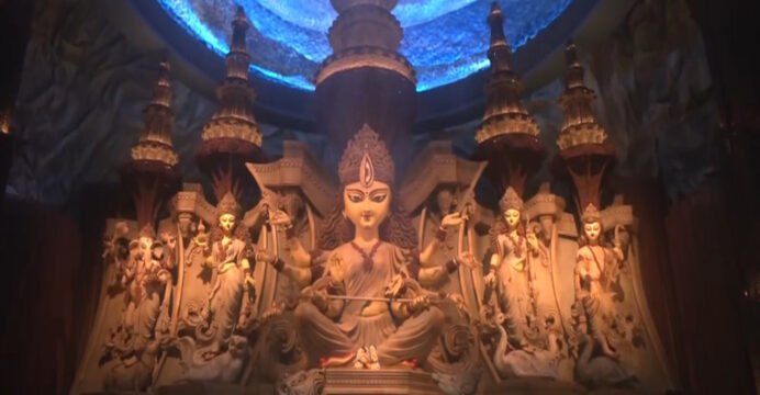 Chetla Agrani Durga Puja pandal showcases ‘Samudra Manthan’ theme with over 3 crore rudraksha