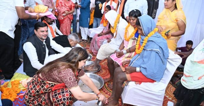She washed the feet of 115 tribals on their "Ghar Wapasi" at the "Janjati Sanskriti aur Gaurav ka Janjagran" programme.