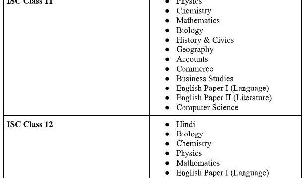 List of the Subjects Covered for the CISCE Students