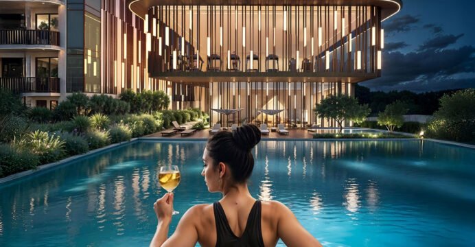 Beyond its modern architectural design, the project integrates premium lifestyle amenities. MRG Crown features 1.5-acre Leisure Island--a green sanctuary at the heart of the community. Complementing it is a sprawling 22,000 sq. ft. clubhouse, curated for high-end indulgence, featuring a half Olympic-sized swimming pool, multiple sports courts, wellness zones, elegant lounge areas, and even fine dining spaces. The development also embraces the needs of modern urban living with EV charging stations, ample visitor parking, private terrace gardens, and dedicated basement workspaces--ensuring that convenience, sustainability, and luxury come together seamlessly.