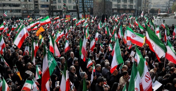 Crowds gather in Tehran’s Enqelab Square to pledge allegiance to Iran’s new Supreme Leader Mojtaba Khamenei