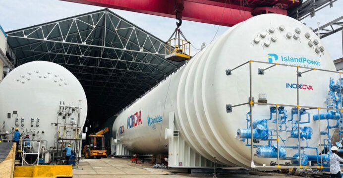 It added that the project "represents the largest installation of shop-built, double-walled vacuum insulated tanks globally," and noted that it is supplying "10 high-capacity tanks along with a regasification system to support island-based power generation."