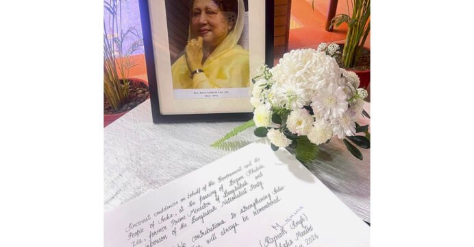 Defence Minister Rajnath Singh pays homage to Khaleda Zia at Bangladesh High Commission in Delhi