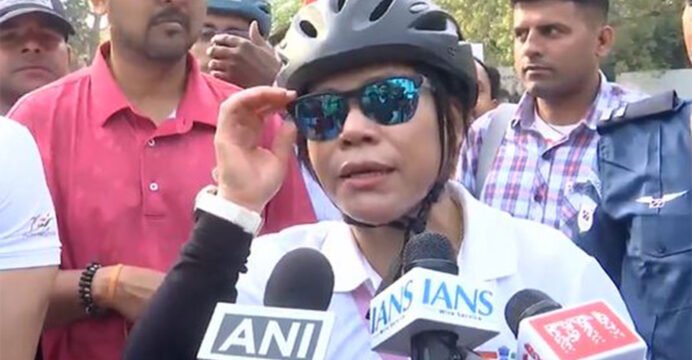Delhi: Boxer and Olympic medalist Mary Kom participates in ‘Fit India Sundays’ on Cycle