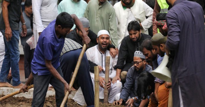 With the final prayers for the funeral service for the slain Inqilab Moncho convenor, Sharif Osman Hadi, concluded on Bangladesh's Dhaka University campus on Saturday, the organisation rallied towards the Shahbagh area, issuing a 24-hour ultimatum to the country's Home Ministry, demanding a report on the progress of arrests of the killers of Osman Hadi.