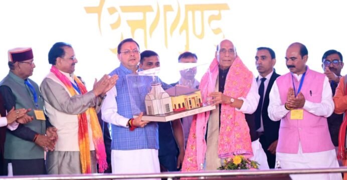 Chief Minister Dhami welcomed the Defence Minister by presenting a replica of the Nanda Devi Temple along with a locally handcrafted shawl.