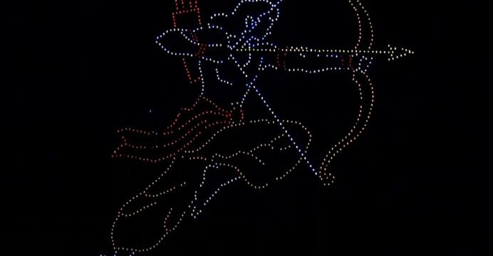 The drones painted a spectacular display in the sky, featuring visuals of Lord Hanuman, Lord Rama, Dhanush, and Ravana.