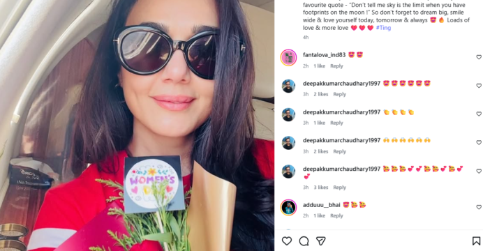 Taking to Instagram, Preity wrote, "Happy Women's day to all you gorgeous ones out there Today more than ever I wanna remind you of my favourite quote - "Don't tell me sky is the limit when you have footprints on the moon !" So don't forget to dream big, smile wide & love yourself today, tomorrow & always Loads of love & more love #Ting."