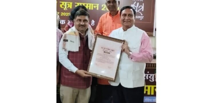 Dr. Sunil Kumar Sharma Honoured with Sutra Samman 2025 for Literary Excellence