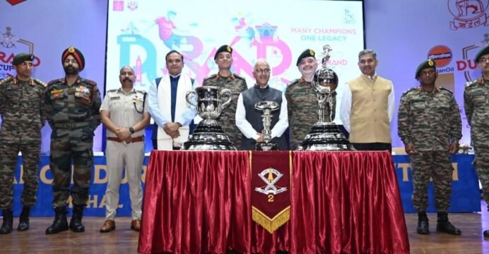 The three trophies of the Durand Cup were showcased at the City Convention Centre in the presence of Ajay Kumar Bhalla, Governor of Manipur who was the Chief Guest of the event. Also present, were Prashant Kumar Singh IAS, Chief Secretary, Government of Manipur and senior military leadership including Lt. Gen. Mohit Malhotra AVSM SM, Chief of Staff, HQ Eastern Command and Chairman, Durand Cup Organising Committee, Lt. Gen. Abhijit S. Pendharkar AVSM YSM, General Officer Commanding, 3 Corps, Maj Gen. S.S Karthikeya YSM SM, General Officer Commanding, 57 Mountain Division, Maj. Gen. Ravroop Singh YSM SM, Inspector General, Assam Rifles (South) and Rajiv Singh IPS -DGP Manipur, according to a release from Durand Cup and AIFF.