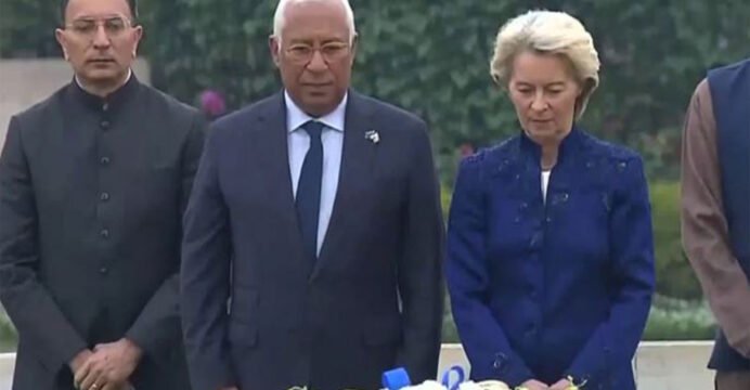 EU Presidents lay wreath at Raj Ghat in honour of Mahatma Gandhi