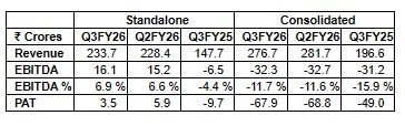 The following table summarizes the unaudited financial results for Q3 FY26 as approved by the Board of Directors on February 13, 2026: