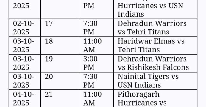 Fixtures for season two of Uttarakhand Premier League announced