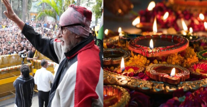 Megastar Amitabh Bachchan took to his X account to share pictures. One of the pictures showed him waving at a huge crowd of fans outside his Mumbai home, while another featured glowing diyas.