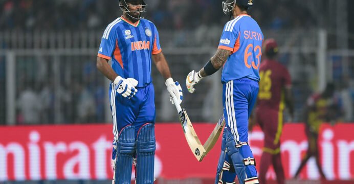 India's win secures a semi-final spot, knocking West Indies out of the tournament. Samson carried his bat, leading India's highest successful T20I chase in the T20 WC and at the Eden Gardens.