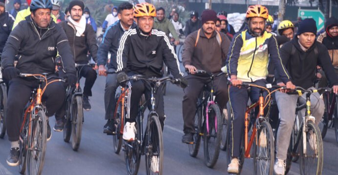 The cycling rally was led by Union Minister of Youth Affairs and Sports Mansukh Mandaviya, who was joined by tennis legend Leander Paes and Badminton legend Pullela Gopichand, along with up-and-coming international wrestler Shivani Pawar, as per a release from SAI media.