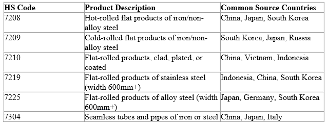 Key HS Codes for Steel Imports into India