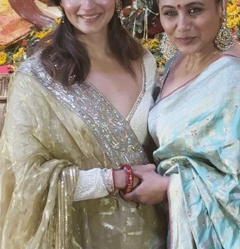 What made her appearance even more memorable was her rushing to greet actress Rani Mukerji. The two shared a heartfelt hug and posed happily for pictures, joined by Ayan Mukerji and Tanisha Mukerji for a cheerful photo session.