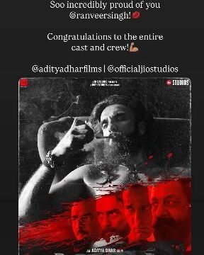 "Dhurandhar has been watched and is worth every minute of those 3.36 hours. So do yourself a favour and get to the cinema hall now! Soo incredibly proud of you ©ranveersingh! Congratulations to the entire cast and crew! @adityadharfilms | Cofficialjiostudios," she posted.