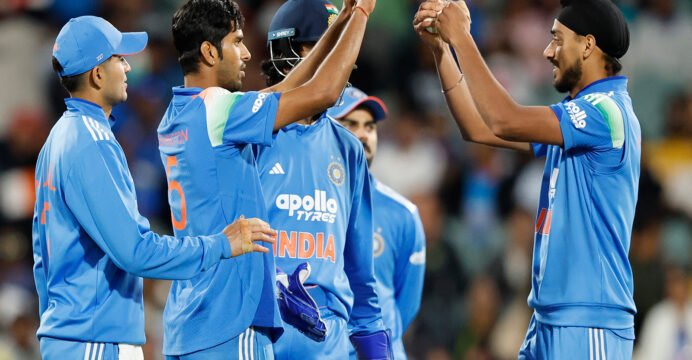 During the run-chase, Australia was reduced to 54/2, but contributions from Matt Short (74 in 78 balls, with four boundaries and two sixes), Cooper Connolly (61* in 53 balls, with five fours and a six) and Mitchell Owen (36 in 23 balls, with two fours and three sixes) always kept Australia in good position even though Washington Sundar (2/37), Arshdeep Singh (2/41) and Harshit Rana (2/59) produced some breakthroughs in between.