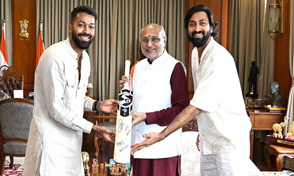 Sharing a post on X, Radhakrishnan expressed his delight after meeting both the players and said, "Delighted to meet our respected Indian Cricket Team Players Shri. @hardikpandya7 Ji and Shri. @krunalpandya24 Ji today at Raj Bhavan, Mumbai on a courtesy meet. My best wishes."