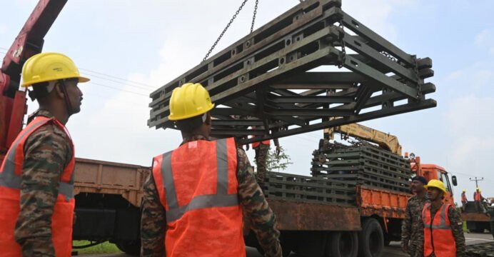 The Engineer Task Force (ETF) of Indian Army has commenced retrieval and de-launching operations of the damaged Puliyampokkanai Bridge at Jaffna. Indian Army is assisting the Road Development Authority (RDA), Sri Lanka by employing a wheeled excavator for de-launching bridge panels. The task is progressing at pace and is likely to be completed by December 10, with the launch of the first Bailey bridge planned by Saturday afternoon.