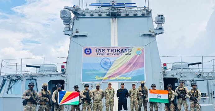 INS Trikand participated in the first tri-services edition of Exercise Lamitiye 2026, along with members from the Indian Army, Indian Air Force and the Seychelles Defence Forces (SDF). This also marked the maiden participation of the Indian Navy in Exercise Lamitiye.