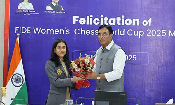 Mandaviya personally felicitated Divya Deshmukh, who also became the 88th Grandmaster of the country and the 4th Indian woman to become a Grandmaster, on becoming the first Indian woman to win the FIDE Women's World Cup, as well as the youngest ever to do so. Koneru Humpy joined the ceremony virtually.