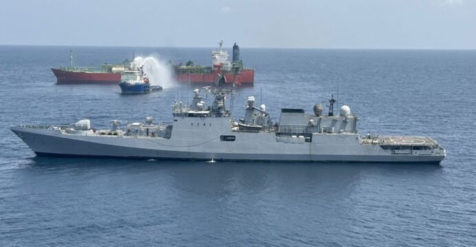 INS Trikand battles blaze, rescues crew after LPG tanker explosion off Yemen coast